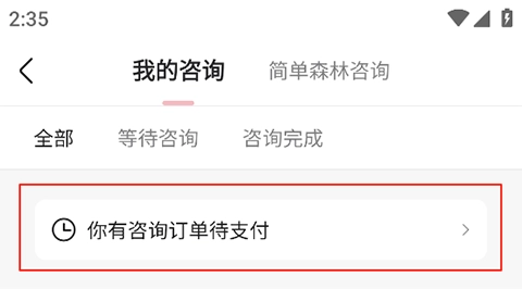 2、点击“你有咨询订单待支付”,若您已经支付下单也可以点击下单的订单;