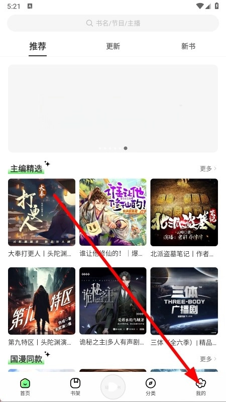 打开轻云听书,点击我的。