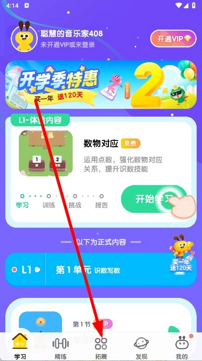 进入同步练页面,选择学习内容。