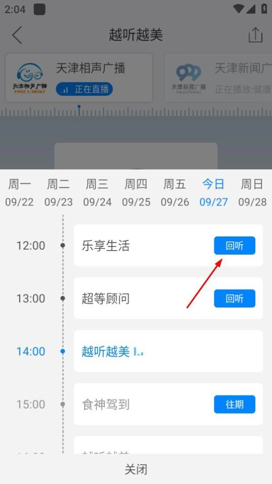 4、进入节目单页面后,找到你想回听的节目,点击该节目对应的回听按钮就行。