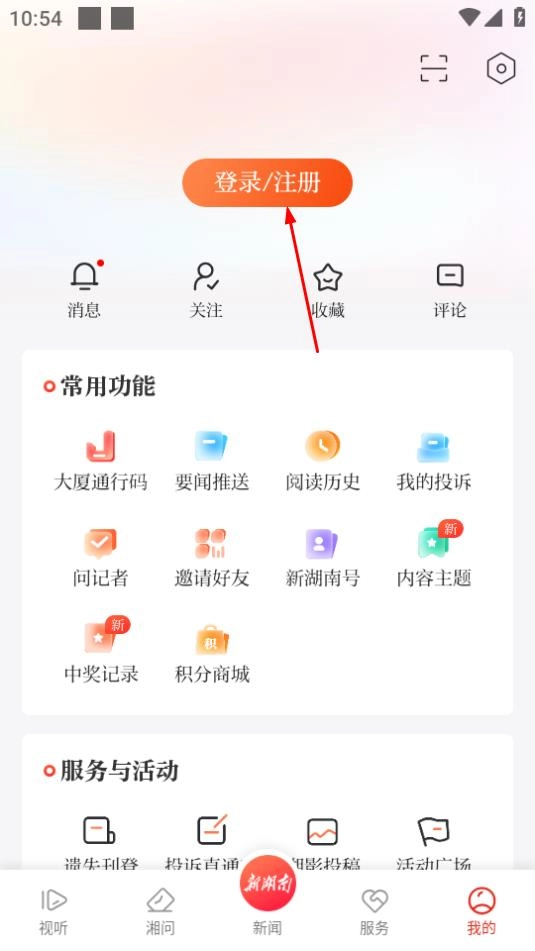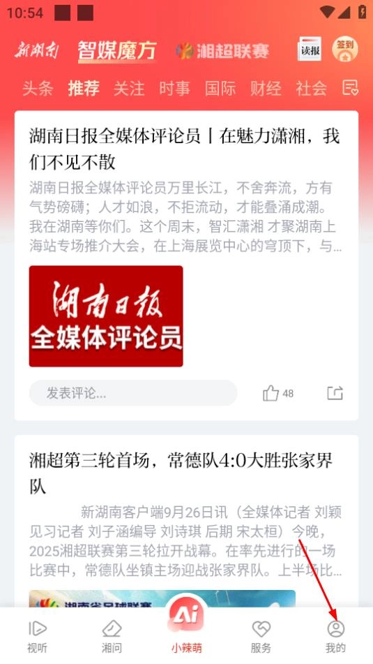 在新湖南平台上,点击页面右下角的“我的”选项,即可进入个人相关页面。
