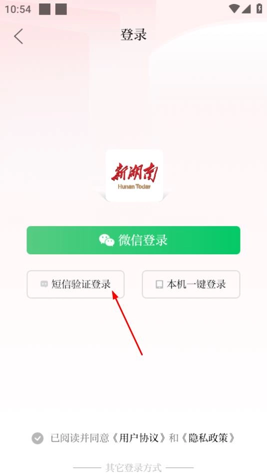 在登录界面,选择短信验证登录方式进入注册页面。
