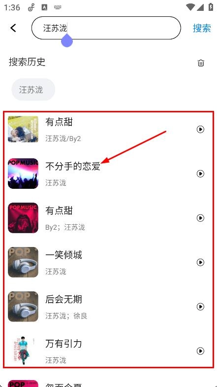 在搜索结果里,挑选你想听的歌曲,比如《不分手的恋爱》,然后进入音乐播放页面。