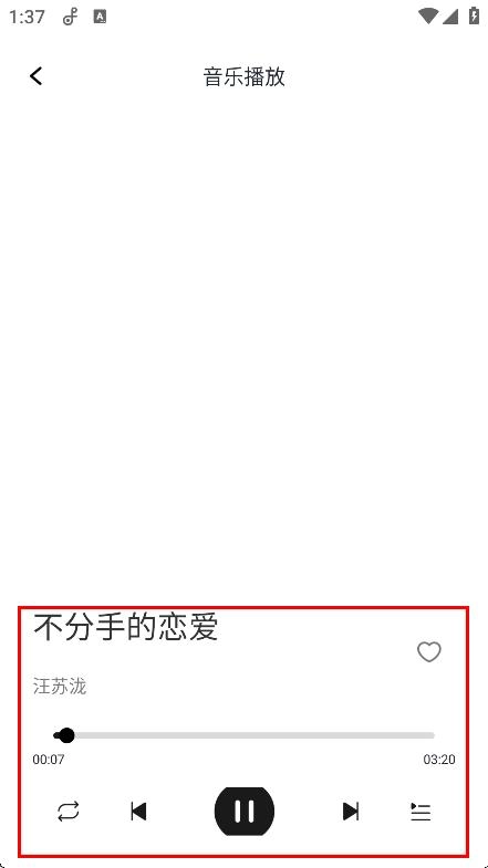 在音乐播放界面,你可以执行播放、暂停、调整音量等操作,欣赏《不分手的恋爱》这首歌曲。