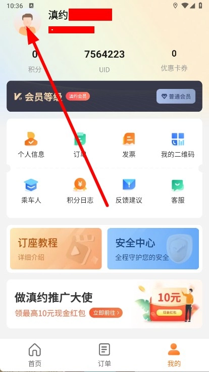 1、打开滇约出行,在个人页面,点击个人信息。