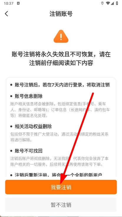 4、然后在注销账号页面,点击我要注销完成操作。