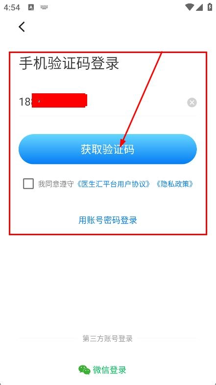3、进入手机验证码登录界面后,先填写手机号,再点击“获取验证码”按钮。