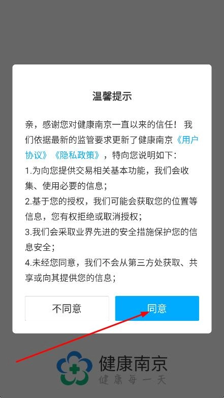 1、在温馨提示弹窗中,点击同意,进入登录页面。