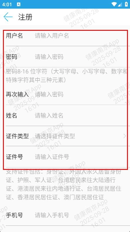 3、在注册页面,填写用户名、密码、姓名等信息。