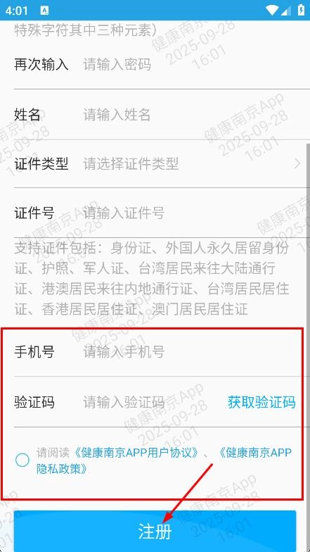 4、填写手机号码,获取并输入验证码后点击注册按钮,即可完成注册流程。