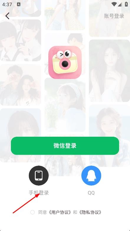 在登录选项页面,点击手机登录按钮,即可进入手机号登录界面。