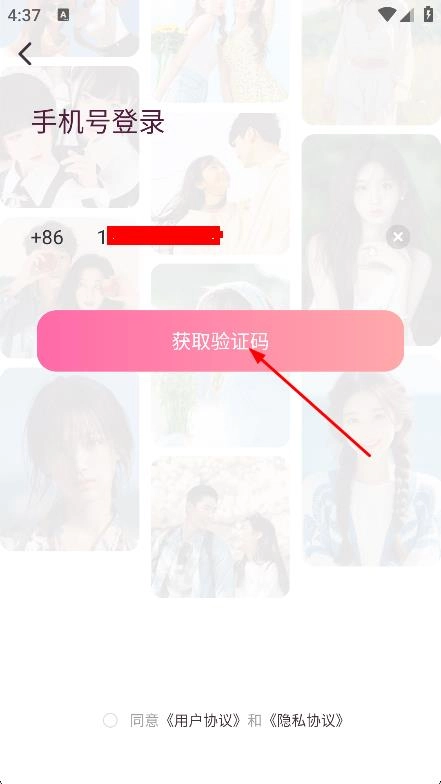 在页面上输入手机号,接着点击获取验证码的按钮,为登录操作做好准备。