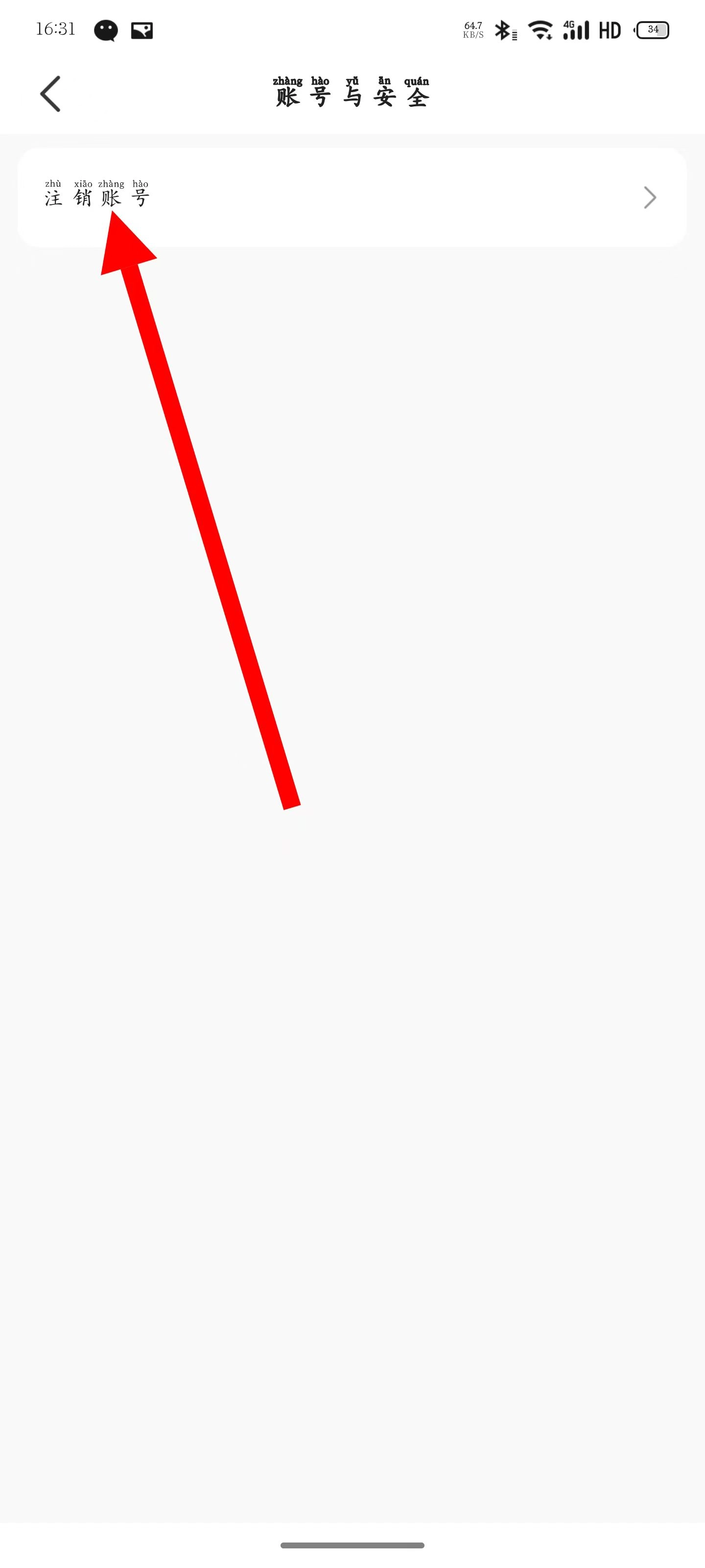 4、在账号与安全页面,点击注销账号。