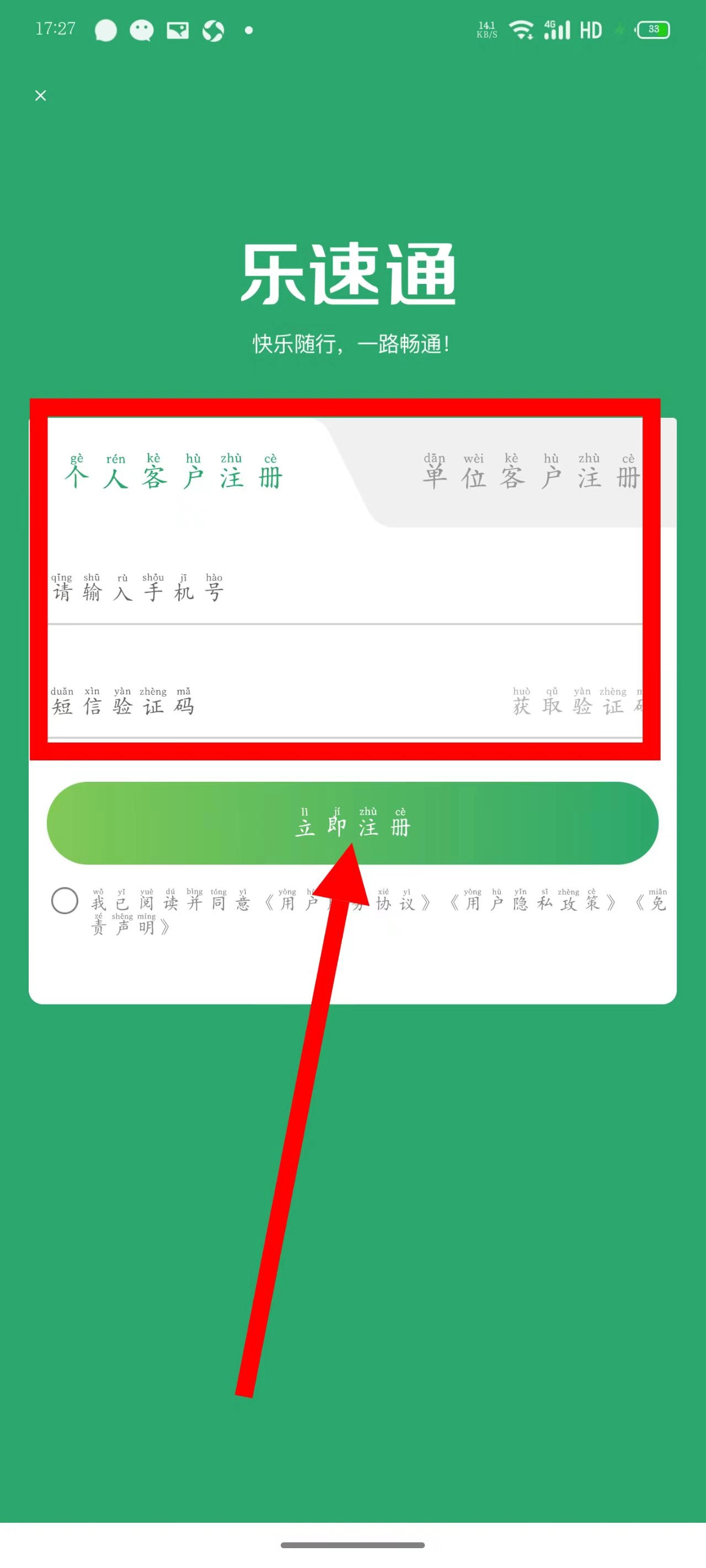 4、在注册页面,输入手机号,勾选相关选项后,点击“立即注册”按钮完成操作。