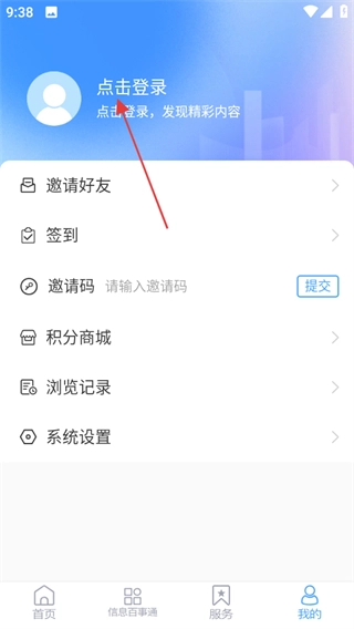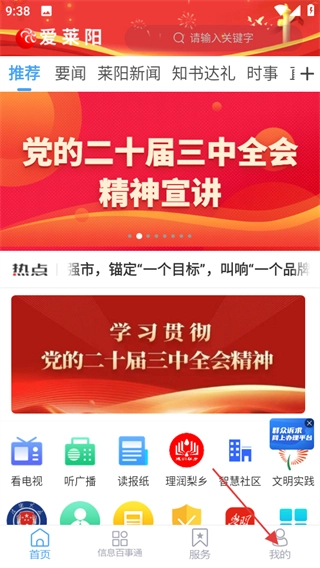 在爱莱阳首页点击页面底部的我的,进入个人页面。