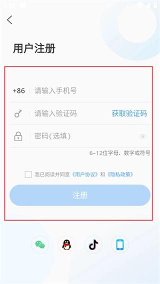 用户在注册页面填写信息、勾选相关协议后,点击注册按钮即可完成注册流程。