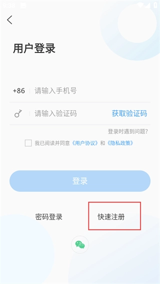 用户登录页面中,点击快速注册按钮,即可跳转至用户注册页面。