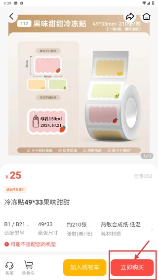 3、在厨房贴纸的商品列表里,找到果味甜甜冷冻贴这一条目,点击进入其商品详情页。