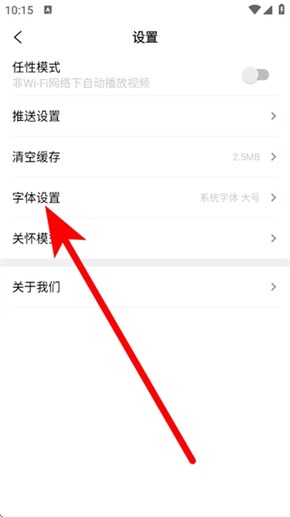 进入设置页面后,点击字体设置。