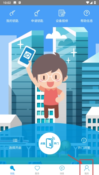 打开门禁管理类别,点击底部的“我的”选项,进入个人中心页面。