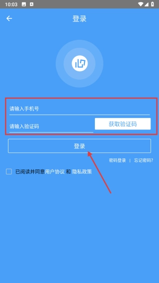 在验证码登录的信息填写页面,先输入手机号与验证码,接着勾选相关协议,随后点击登录按钮,这样就能完成账号登录的操作。