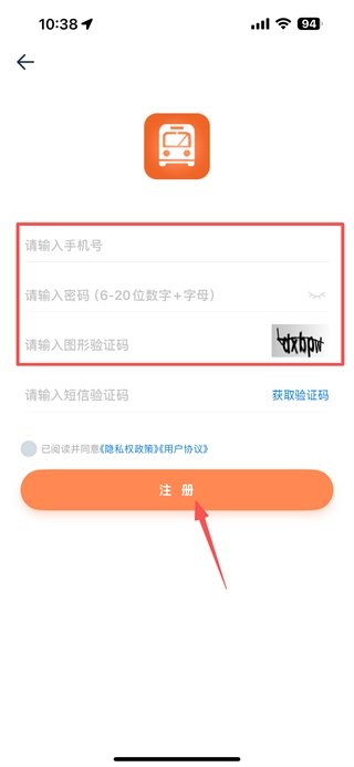 在注册页面依次填写手机号、密码与图形验证码,接着获取并输入短信验证码,最后点击注册按钮,即可完成账号注册流程。