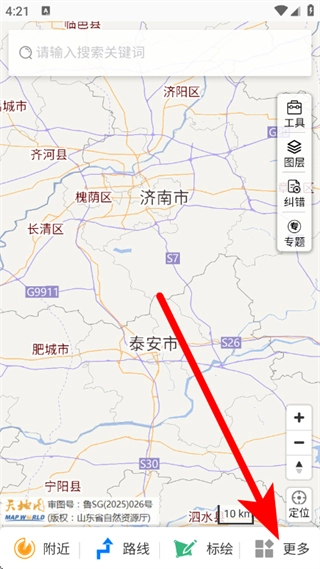 1、打开天地图山东,在地图页面,点击底部更多。