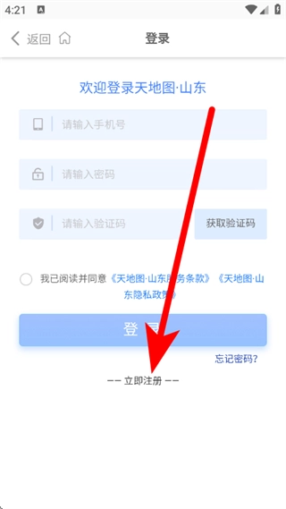 3、在登录页面,点击立即注册,进入注册页面。