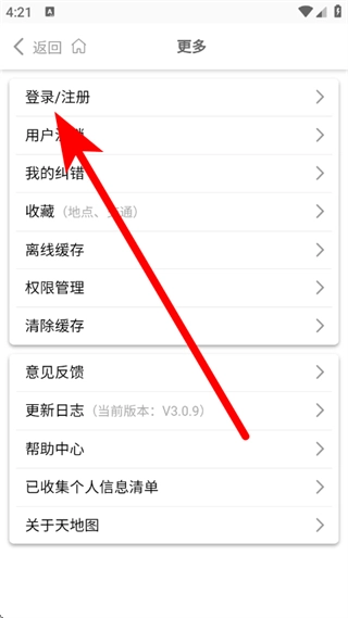 2、在更多页面,点击登录注册,进入登录页面。