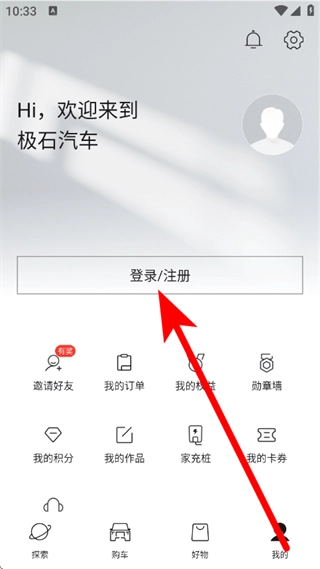 1、打开极石汽车,点击底部我的,进入我的页面。