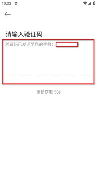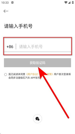 3、在登录注册页面,输入手机号,点击获取验证码。