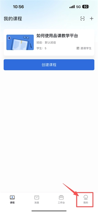 打开教学类板块,点击底部的“我的”选项,即可进入个人中心页面。