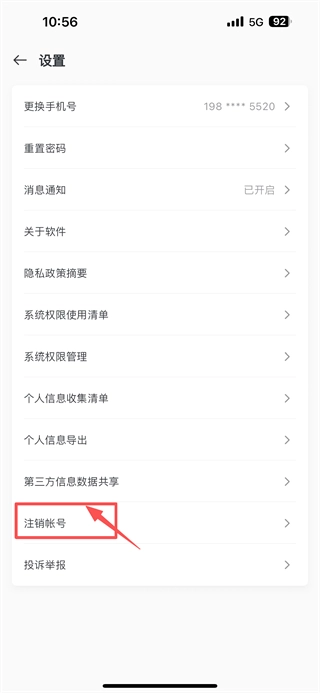 进入设置界面后,找到并点击注销帐号选项,即可进入注销帐号页面。