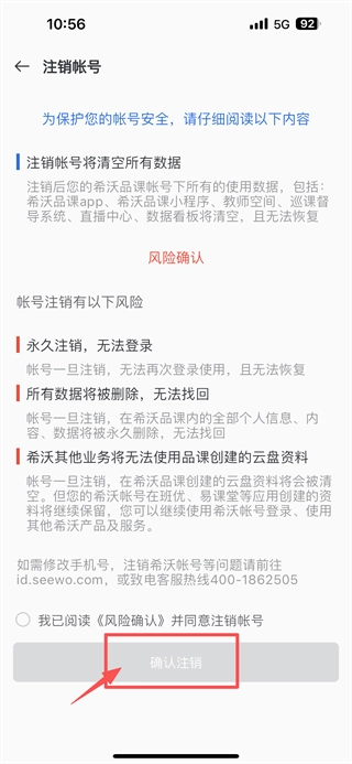 在账号注销页面,仔细阅读风险确认相关内容后,勾选同意协议的选项,接着点击确认注销按钮,即可完成账号注销的操作。