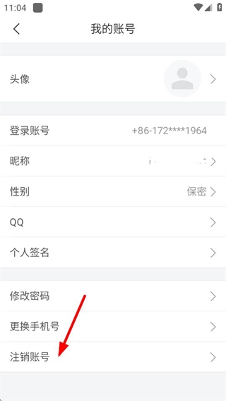 3、在我的账号页面,点击注销账号选项,进入注销提示页面。