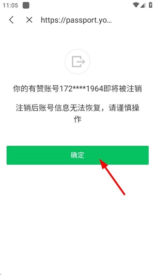 6、在注销确认页面,点击确定按钮,完成账号注销操作。