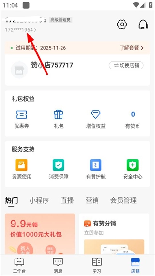2、在店铺页面,点击账号区域,进入我的账号页面。