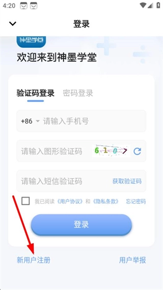 在登录页面,点击新用户注册选项,进入注册页面。