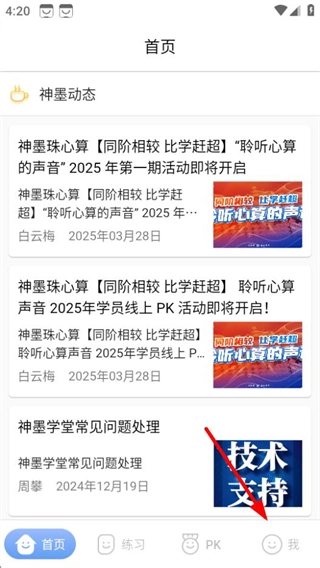 在神墨学堂首页,点击右下角的“我”选项,就能进入登录页面。