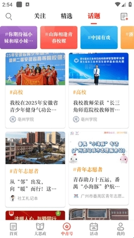 3、此外,“中青号”平台上还设有不少社会热点话题的讨论板块,大家也可以前往阅读相关内容或参与讨论。