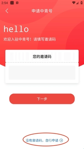 2、由于小编此前未入驻发表过文章,因此这里需要邀请码。若大家没有邀请码,可进行申请,点击下方的“自行申请”按钮即可。