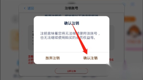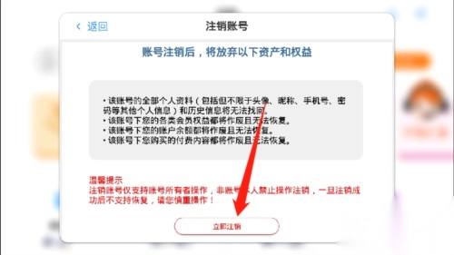 在弹出的页面里查看注销的相关信息,确认没有问题后,点击“立即注销”按钮。