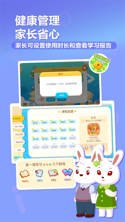 1.趣味闯关模式,激发孩子学习兴趣。