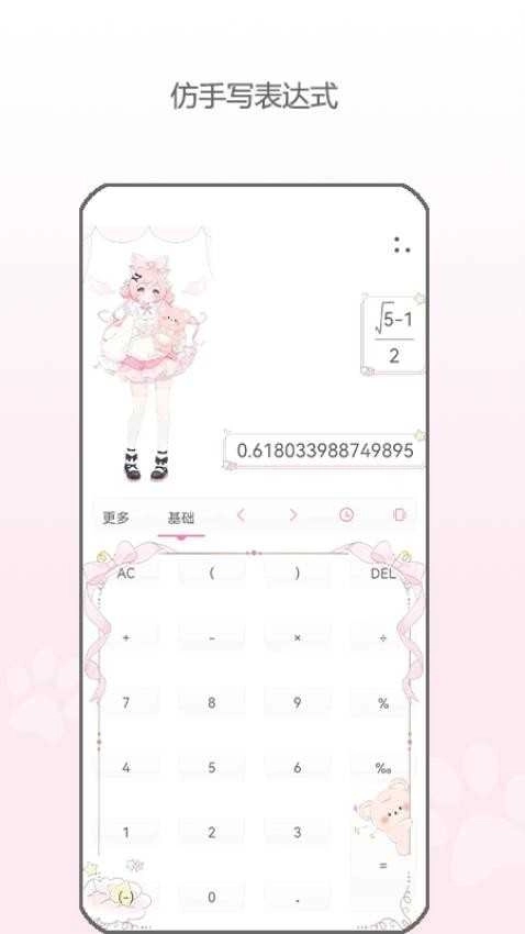 次元计算器洋溢着满满的二次元气息,界面设计精致美观,二次元风格拉满,能让用户在使用时获得视觉上的享受。它支持三角函数、角度弧度转换等科学计算功能,可满足用户学习与工作中的计算需求,帮助用户更高效地完成操作,因此深受二次元爱好者的青睐。