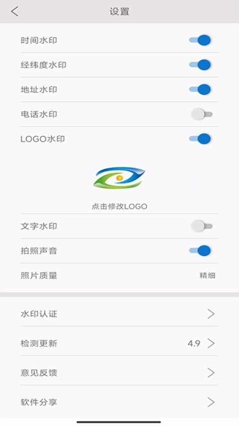 3、在设置页面,可自行选择打开要添加的水印内容