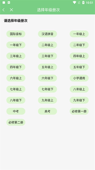 2、进入后选择年级册次。