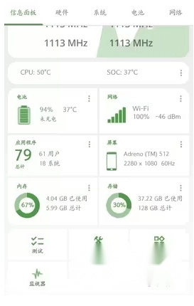 - 开启DevCheck ,进入首页界面,此时会呈现手机信息的概览内容。