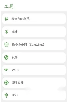 - 具备能够检测ROOT权限、蓝牙状态以及安全网的小工具。