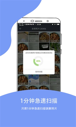 1、运用先进的深度恢复技术,可找回更多误删的照片。 2、安装包体积小巧,运行流畅,不会占用过多手机资源。