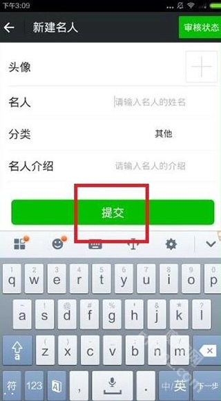 4、可自行创建名人,输入信息后提交。